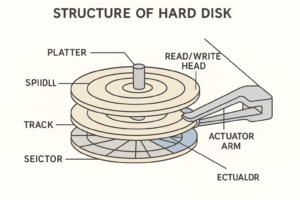 हार्ड डिस्क कंप्यूटर की स्थायी मेमोरी (Secondary Storage) है, जिसमें सभी डाटा और प्रोग्राम लंबे समय तक सुरक्षित रहते हैं। इसकी संरचना निम्न प्रकार होती है :